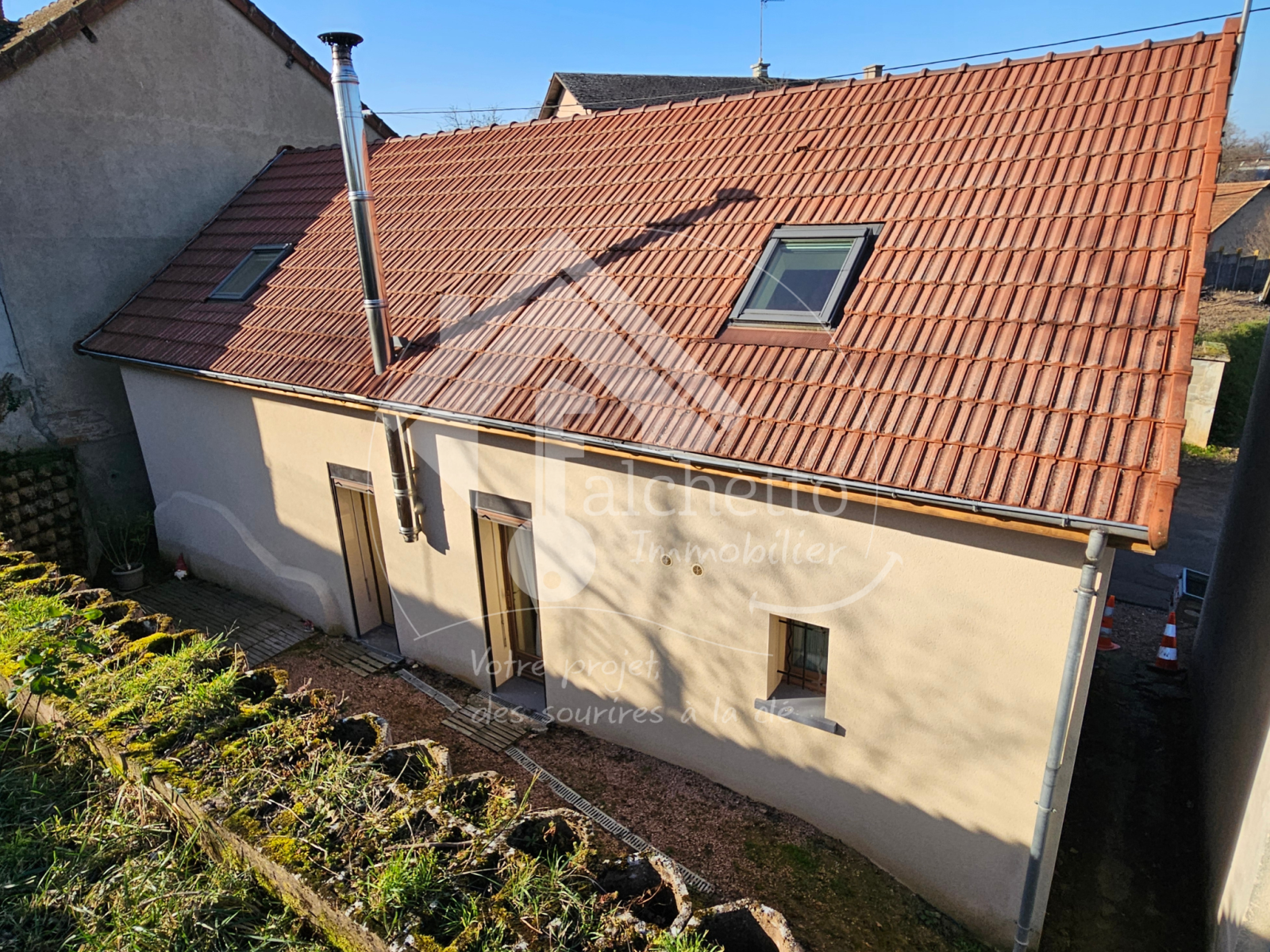 La toiture est récente (2014) et un démoussage et un traitement de charpente en guise d'entretien ont été réalisés en 2023. Fenêtres double vitrage.