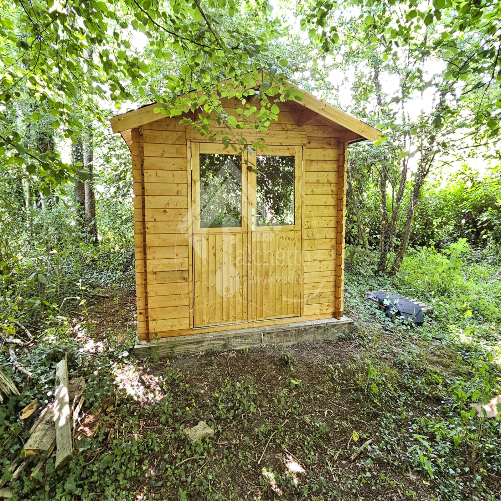 Petit terrain à l'avant de la maison et à quelques pas, un terrain non attenant de 180 m² vous attend, avec une petite cabane en bois idéale pour profiter de l’extérieur en toute tranquillité.