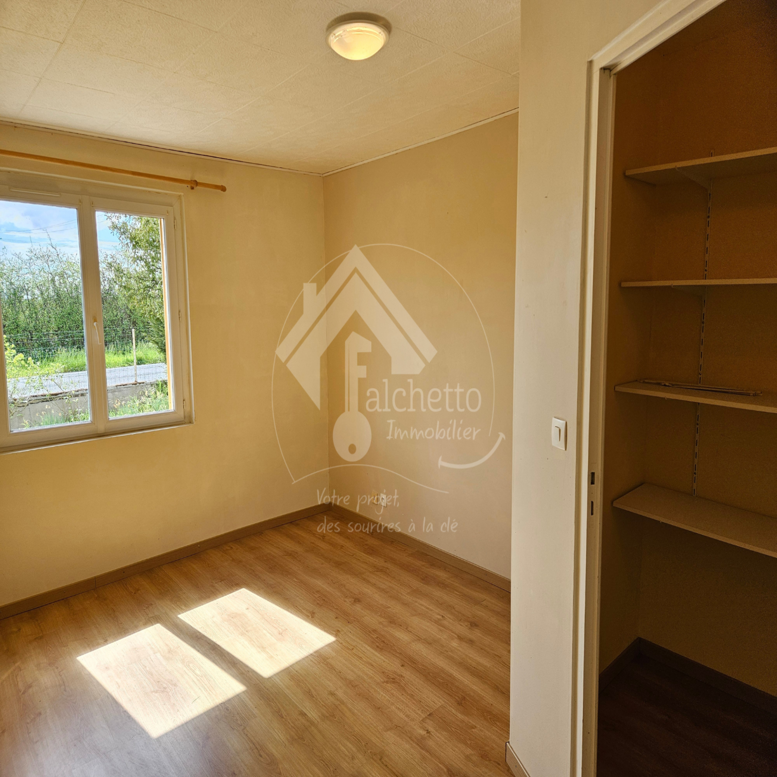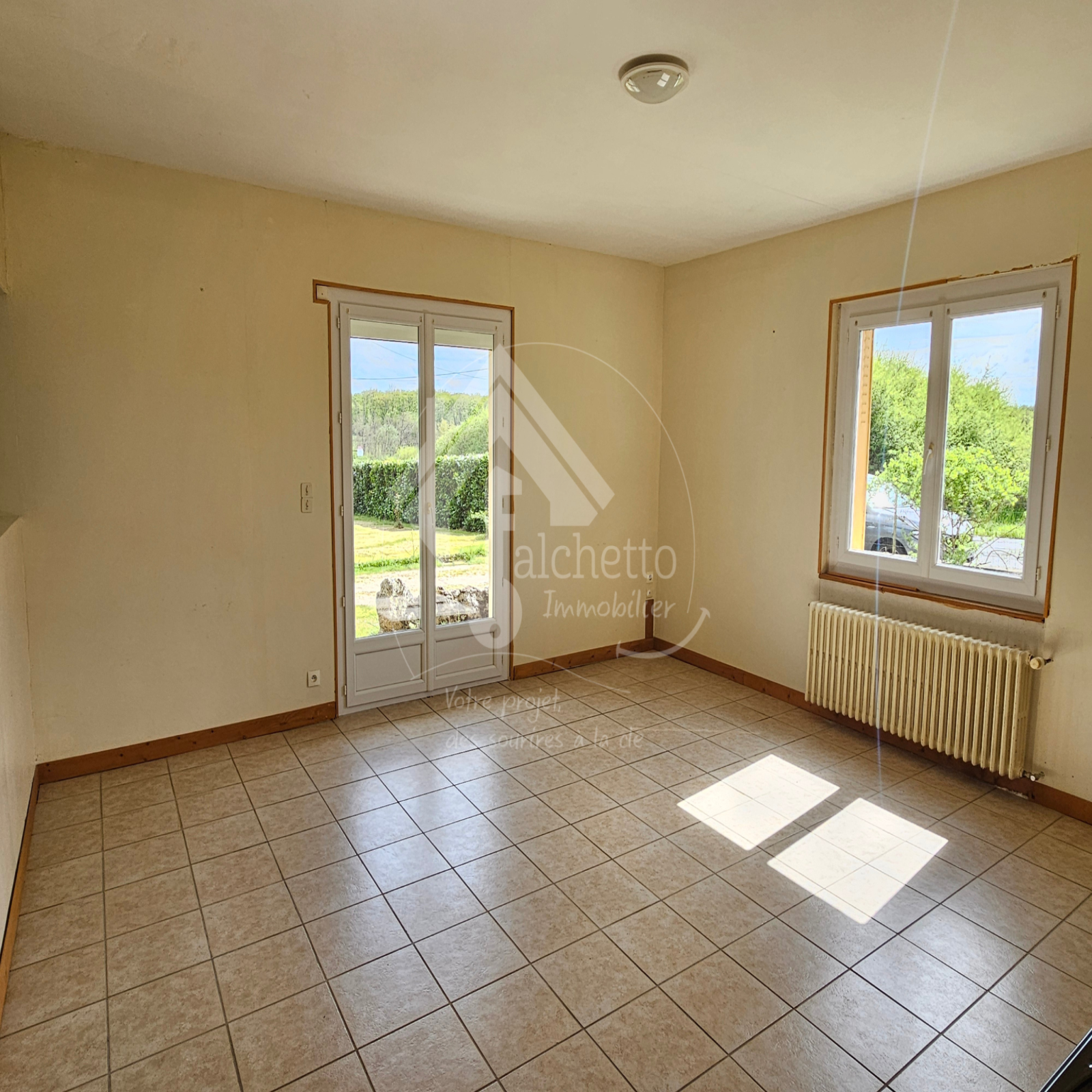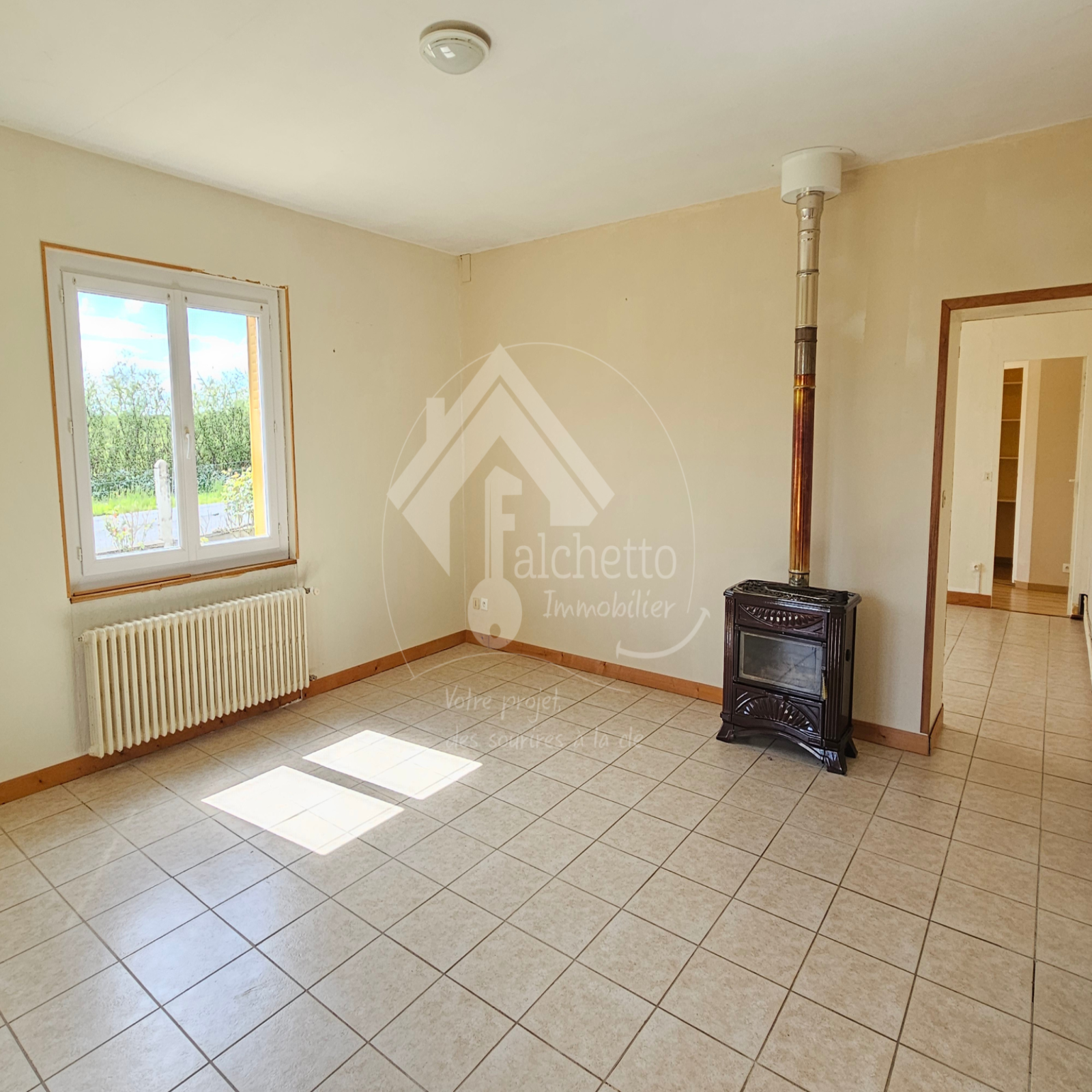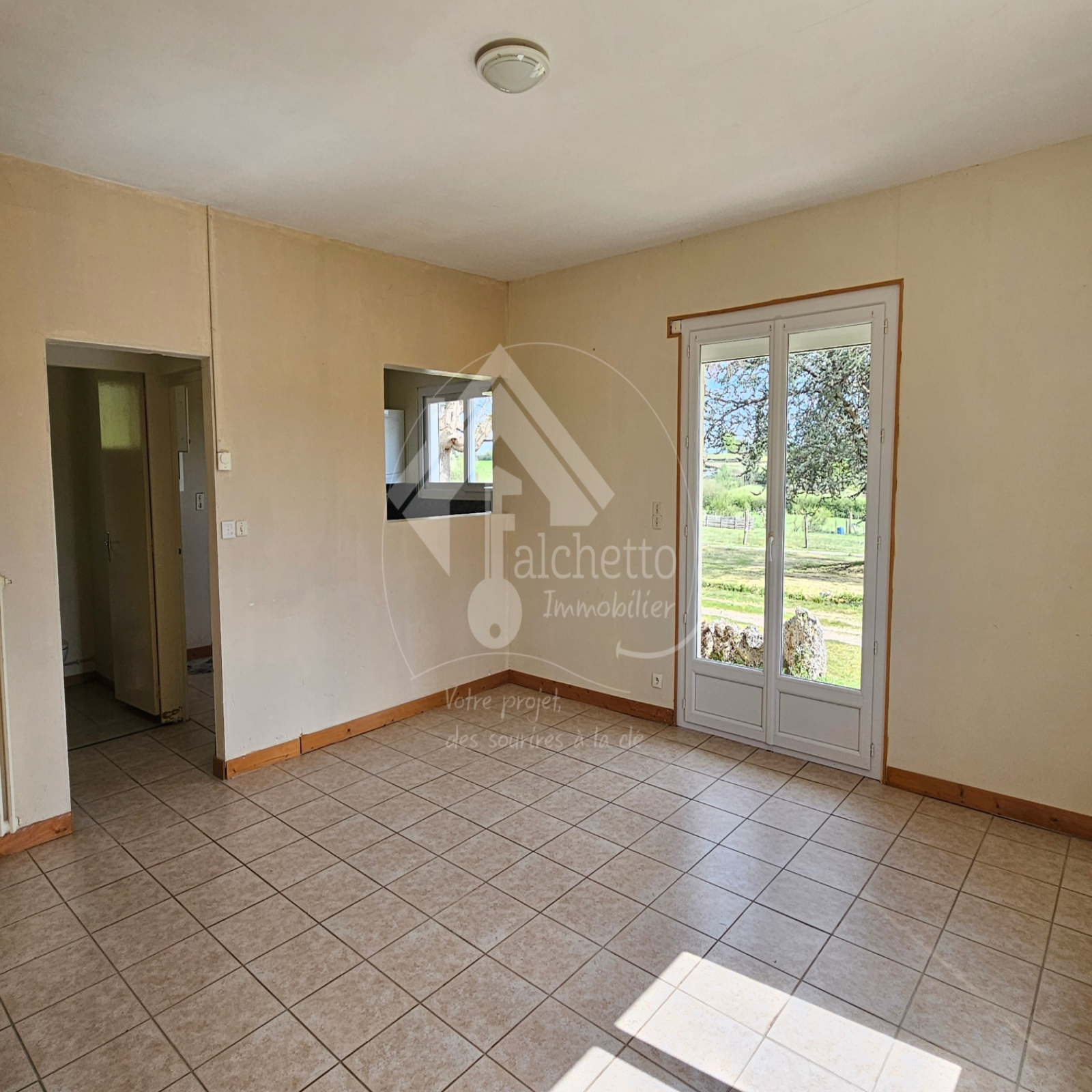 L'agence Falchetto Immobilier vous propose en EXCLUSIVITE, située à seulement 2 km du centre de Vaumas, cette maison de plain-pied de 75 m² offrant un cadre de vie paisible au cœur d’un terrain arboré de 1952 m² avec une jolie vue dégagée.